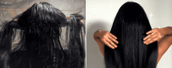 Retira con agua fría o tibia. Al instante vas a sentir la diferencia — suavidad, brillo y movimiento real.
